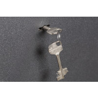 - Bij de kluis met dubbelbaard sleutelslot zitten 2 sleutels