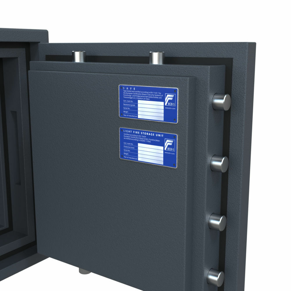Tevens is de kluis gecertificeerd op brandwerendheid volgens ( ).